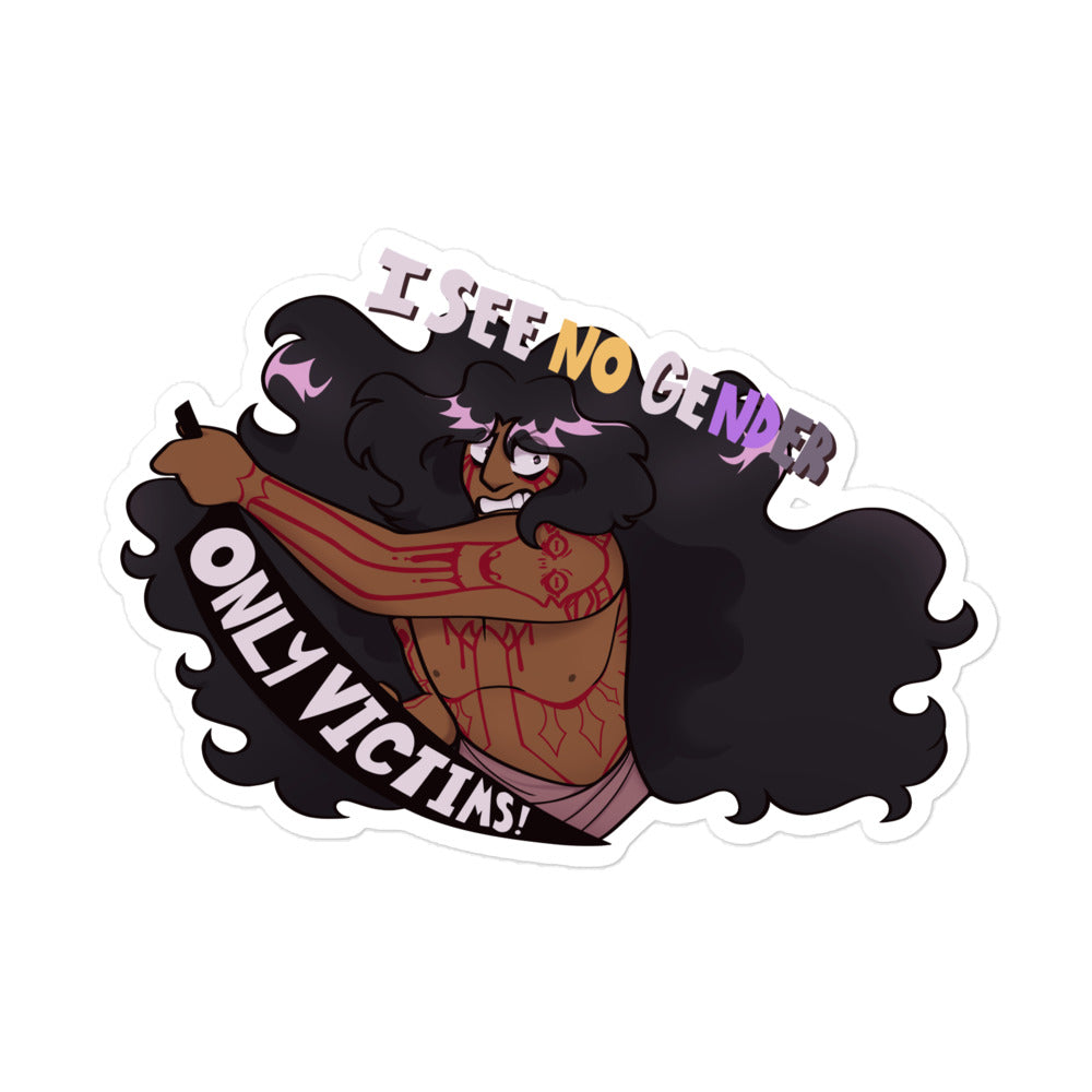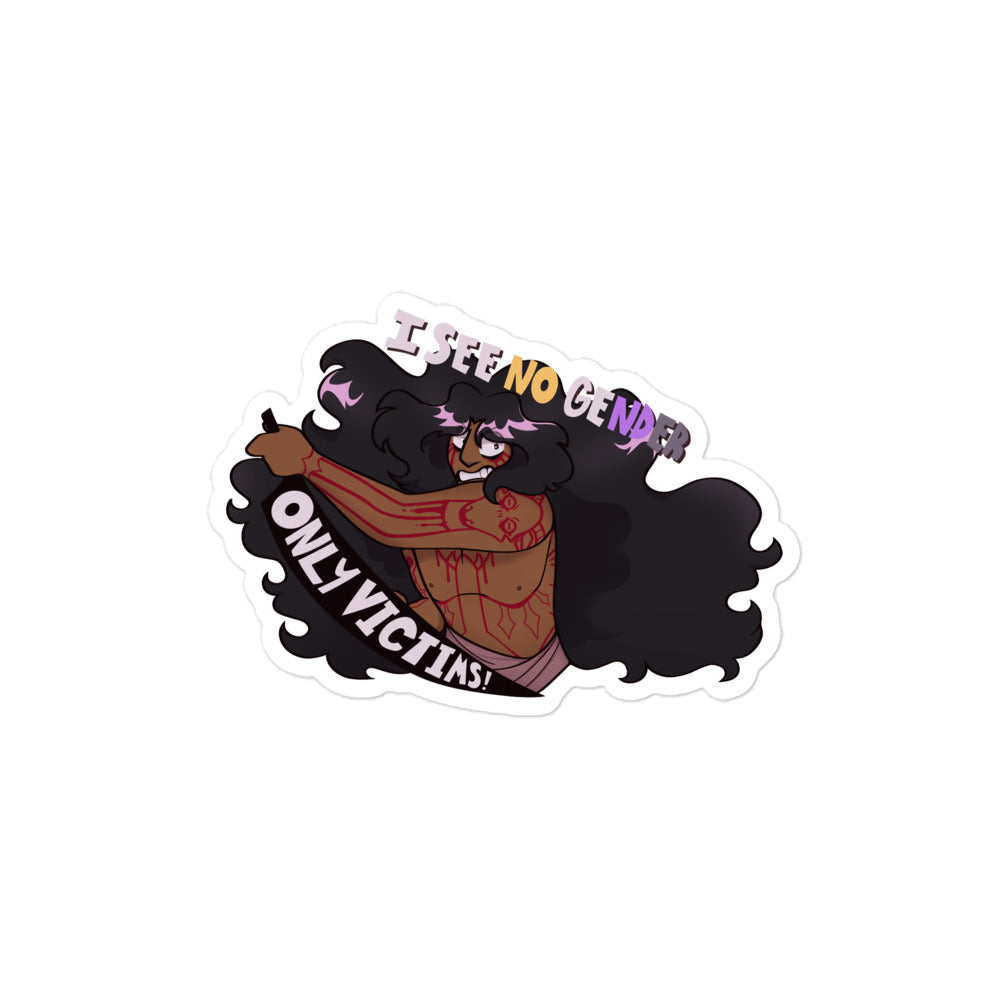 Haven't we all felt like an asexual murdering machine who doesn't see gender, only victims? With extra Non-Binary Pride!